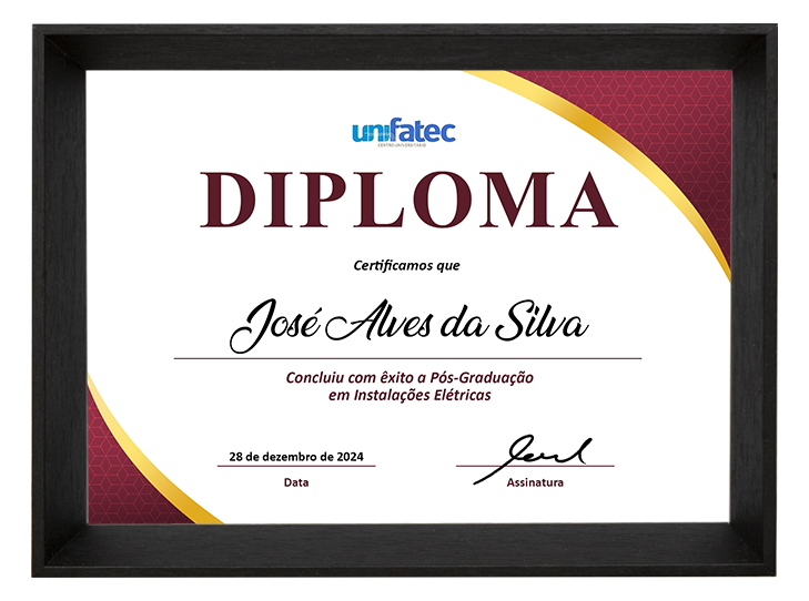 Depois que for aprovado nas avaliações de todas as disciplinas do curso, o aluno irá receber o seu certificado de conclusão da pós-graduação, emitido pela UNIFATEC, assinado pelo Reitor da faculdade.